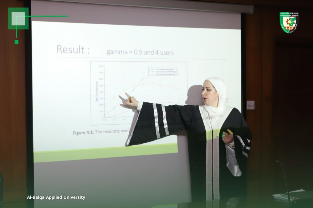 وقدمت الطالبة أبو حماد رسالتها الموسومة: “تصميم شبكات قائمة على تقنية MIMO بكفاءة طاقية: مقاربة من منظور التجميع”، والتي حظيت بإشادة أعضاء اللجنة، حيث أوصوا بإجازتها، متمنين لها المزيد من التوفيق والتميّز في مسيرتها الأكاديمية وخدمة وطنها.