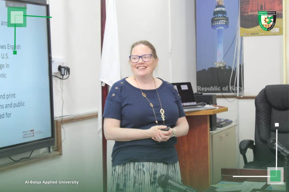 وقد حاضر في ورشة العمل الأستاذة الدكتورة جينيفر غرين / خبيرة برنامج اللغة الإنجليزية بالتعاون مع السفارة الأمريكية في الأردن.