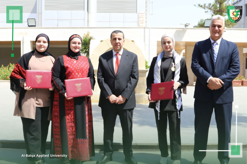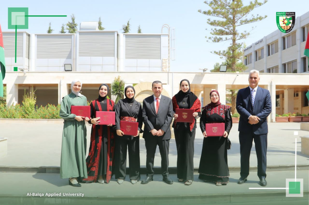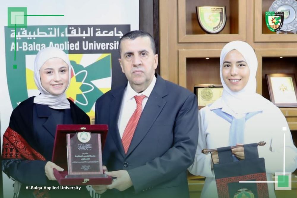 كرّم رئيس جامعة البلقاء التطبيقية، الأستاذ الدكتور أحمد فخري العجلوني، مجموعة من طالبات التبادل الطلابي العربي من فلسطين اللواتي تم استضافتهن في كلية السلط للعلوم الإنسانية ضمن إطار برنامج التبادل الطلابي العربي، الذي ينظمه المجلس العربي للتدريب والإبداع الطلابي في الجامعات العربية، وذلك بحضور عميد الكلية الأستاذ الدكتور عزيز الرحامنة، والأستاذ الدكتور فواز الزغول مدير المجلس العربي للتدريب والإبداع الطلابي، والمهندس جهاد الخراز مساعد مدير المجلس، وعدد من أعضاء الهيئتين التدريسية والإدارية.