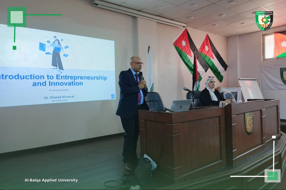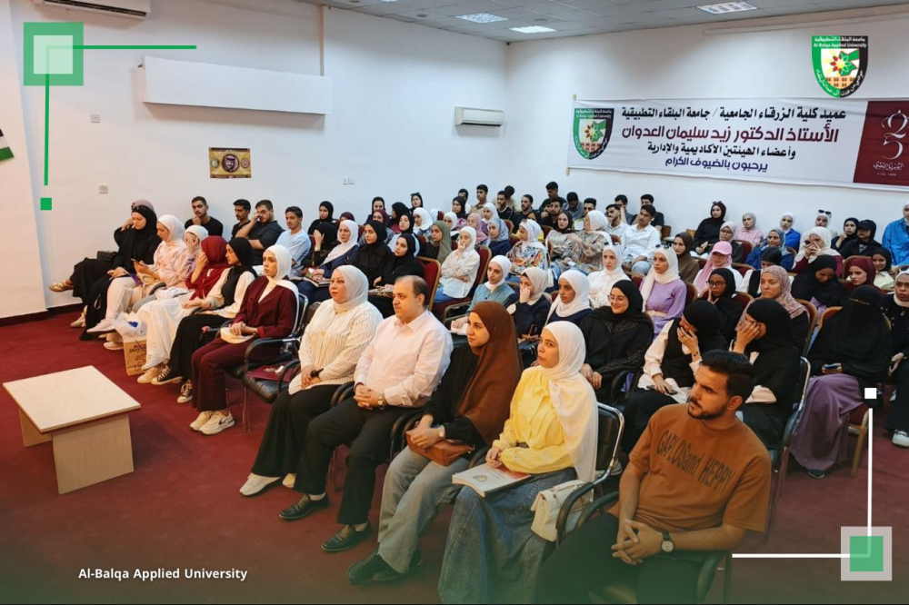 نظمت كلية الزرقاء الجامعية في جامعة البلقاء التطبيقية محاضرة بعنوان "استكشاف ريادة الاعمال الابداعية في التخصصات الطبية" بحضور عميد الكلية الأستاذ الدكتور زيد سليمان العدوان ومساعد العميد للشؤون الطلابية الدكتورة جمانة الشوابكة، حاضر فيها الدكتور خالد خريسات المؤسس والمدير العام لشركة منصة دمج الاكاديميا بالصناعة.