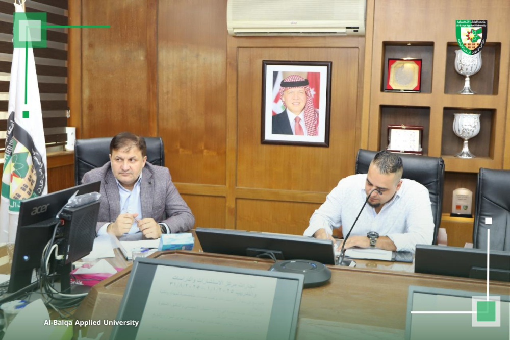 التقى نائب رئيس جامعة البلقاء التطبيقية للشؤون الإدارية وشؤون المراكز، الأستاذ الدكتور خالد الزعبي، بأعضاء مجلس مركز الاستشارات والدراسات والتدريب في الجامعة، لبحث عدد من القضايا والملفات التي تسهم في تطوير الأداء الإداري وتعزيز كفاءة العمل المؤسسي، إلى جانب تقوية العلاقة بين الجامعة والمجتمع المحلي.