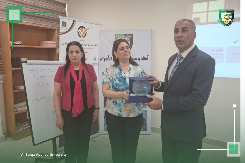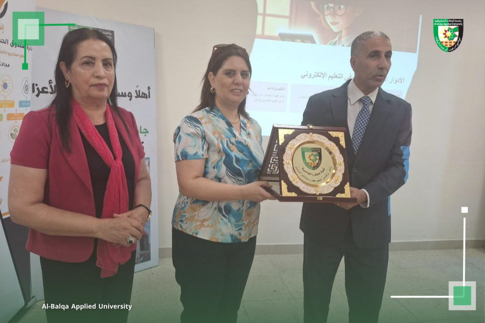 وفي ختام فعاليات الورشة، قامت مديرة المدرسة المعمدانية السيدة رشا مشربش بتكريم الأستاذ الدكتور وائل الربضي تقديرًا لدور الكلية في دعم العملية التعليمية. كما قدّم عميد الكلية درع جامعة البلقاء التطبيقية لمديرة المدرسة، في بادرة جسّدت روح التعاون والشراكة بين المؤسستين، وأكّد من خلالها على أهمية استمرار التعاون في خدمة قطاع التعليم وتطويره.