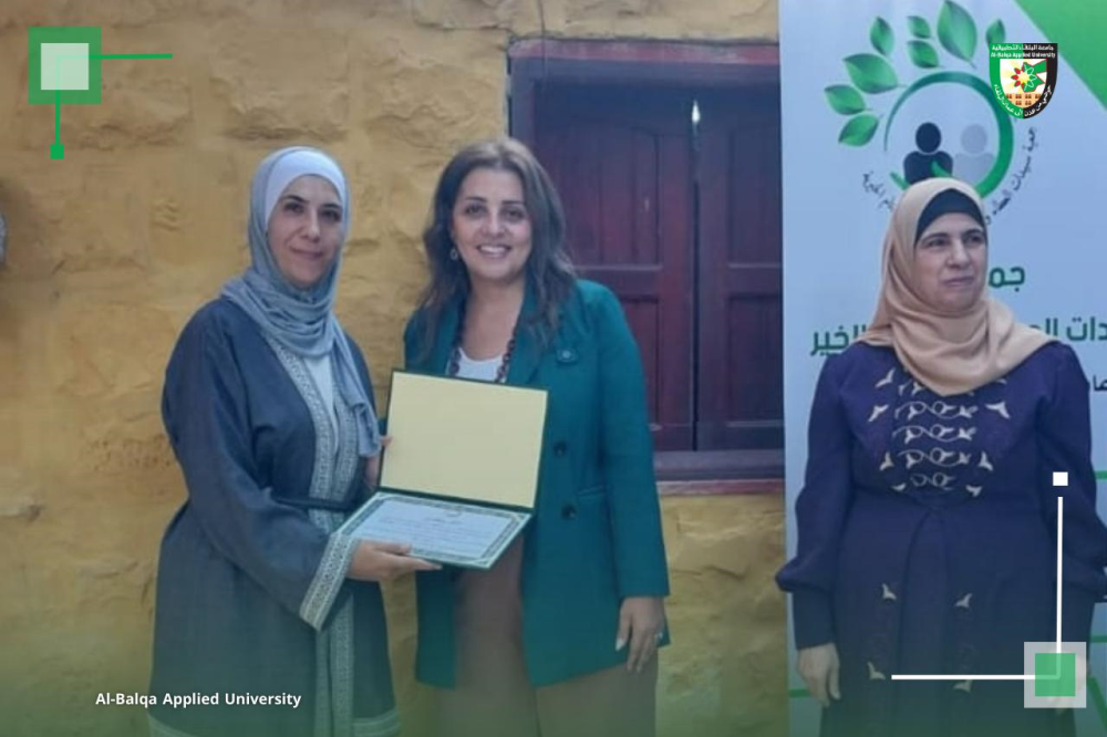 وشهد الحفل تكريم جامعة البلقاء التطبيقية ممثلة بوحدة التنمية وخدمة المجتمع المحلي، حيث جرى تكريم مديرة دائرة المسؤولية المجتمعية السيدة رولى سالم أبو حمور، ورئيسة قسم التوعية والتثقيف السيدة رندة عبد الكريم عربيات، تقديراً لجهودهن المتميزة وتعاونهُن المثمر في تنفيذ البرامج التوعوية داخل الجمعية.