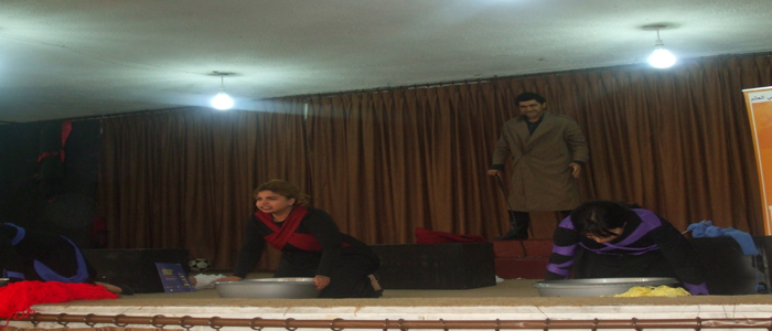نظمت اللجنة الوطنية الأردنية لشؤون المرأة وبالتعاون مع كلية عجلون الجامعية /جامعة البلقاء التطبيقية وضمن فعاليات الحملة السنوية لمناهضة العنف ضد المراة عرض مسرحي بعنوان(غزل البنات ) بحضور مساعد العميد للشؤون الطلابية الدكتورة سهام الصمادي والدكتور جاسر عنانزة وأعضاء الهيئتين الإدارية والأكاديمية وطلبة الكلية .