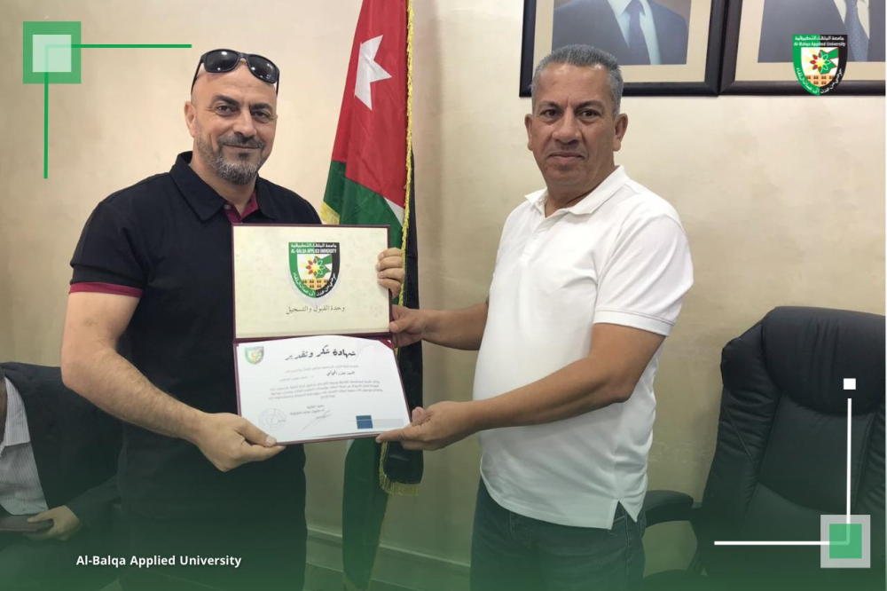 وخلال التكريم الذي أقيم في رحاب الكلية، أكد الطراونة أنّ هذا الإنجاز لم يكن ليتحقق لولا روح التعاون والعمل بروح الفريق الواحد، حيث تكاملت جهود الإدارة والهيئتين التدريسية والإدارية، إلى جانب مساهمة الطلبة الحاليين والخريجين، والدعم الكبير من المجتمع المحلي وأرباب العمل وجهات التدريب. وأضاف أنّ هذه الأطراف جميعًا أسهمت بشكل فعّال في تعزيز مكانة الكلية وتهيئتها للوفاء بمتطلبات الجودة الأكاديمية والإدارية.