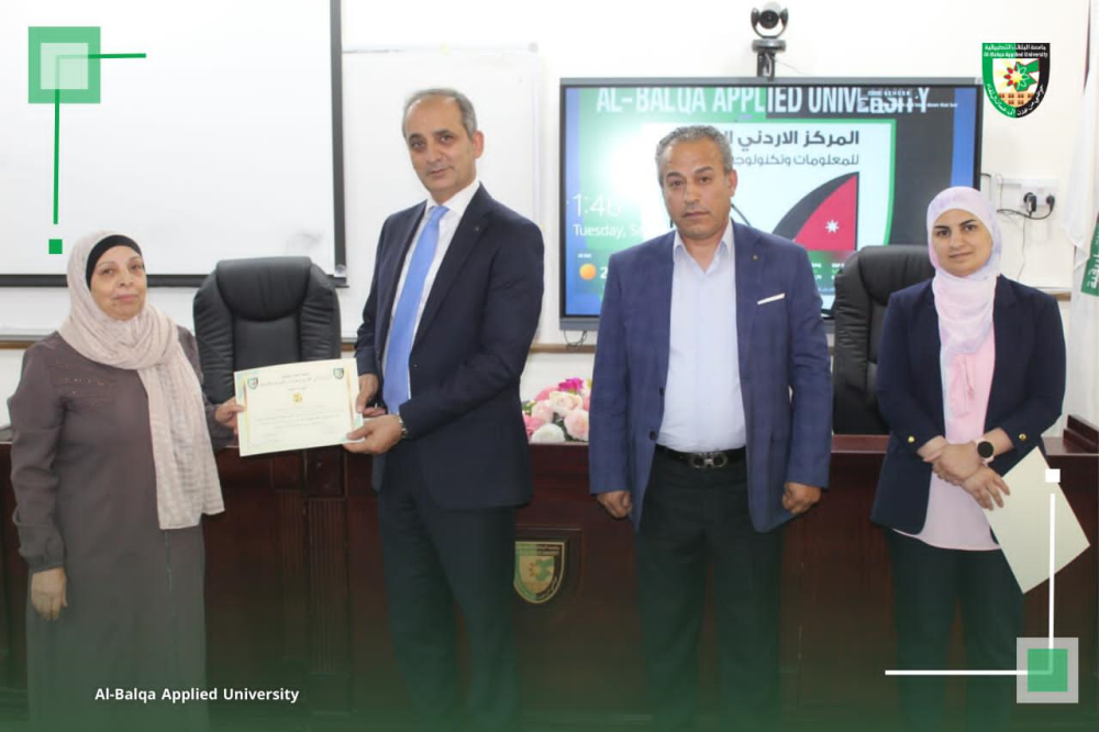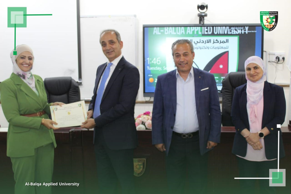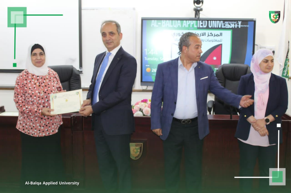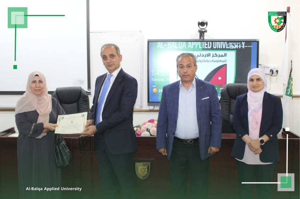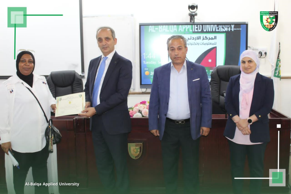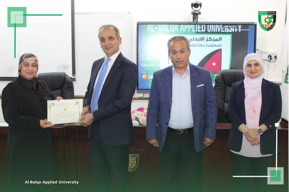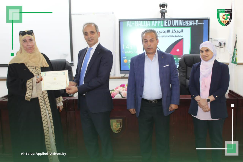 بتوجيهات من عطوفة الأستاذ الدكتور أحمد فخري العجلوني رئيس جامعة البلقاء التطبيقية، ,ومندوباً عنه الأستاذ الدكتور خالد ناصر الزعبي، عُقدت في المركز الأردني الكوري للمعلومات وتكنولوجيا الاتصالات بالتعاون مع وحدة التنمية وخدمة المجتمع المحلي ورشة تدريبية متخصصة بعنوان “التسويق الرقمي للمنتجات الصناعية وتعزيز الإنتاجية باستخدام الذكاء الاصطناعي”، والتي استهدفت سيدات المجتمع المحلي في محافظة البلقاء.