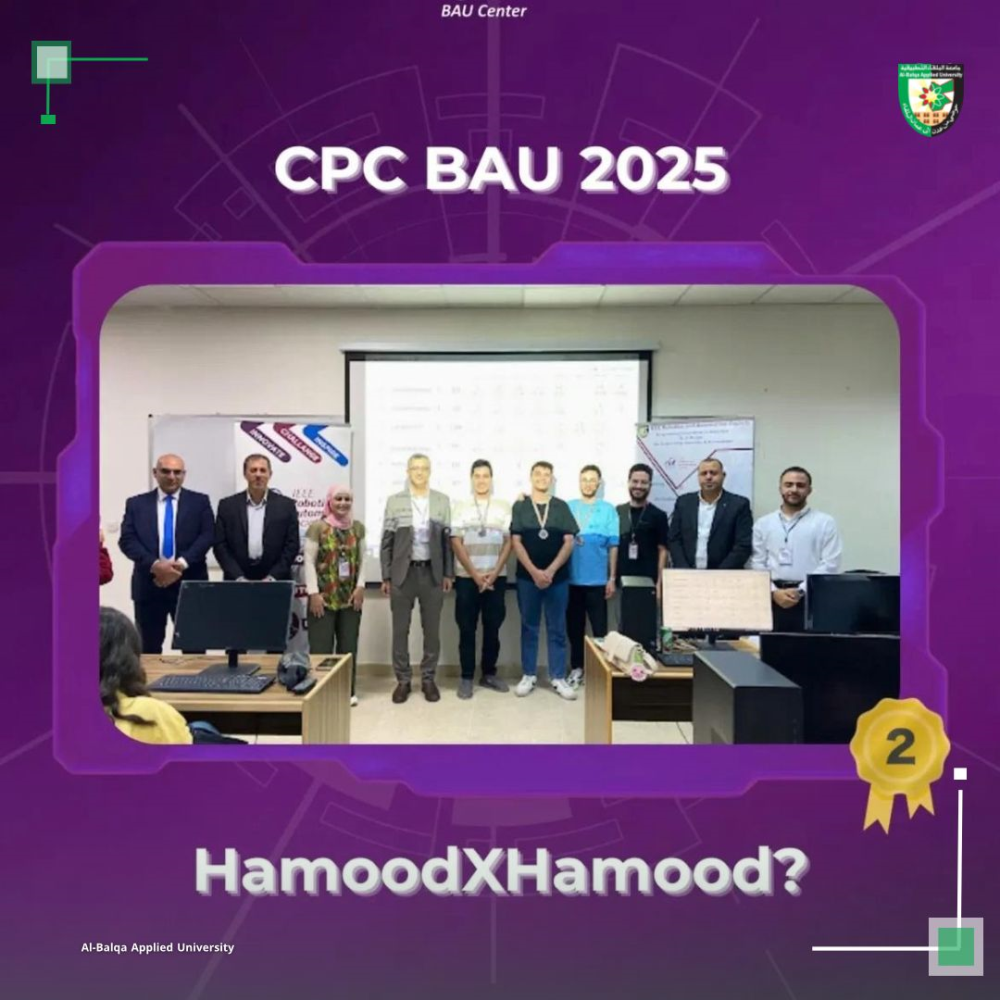 وتجسد هذه المسابقة التزام جامعة البلقاء التطبيقية بدعم الابتكار والعمل الجماعي بين طلبتها، بما يسهم في إعداد جيل متميز قادر على مواكبة التطورات المتسارعة في مجالات البرمجة وتكنولوجيا المعلومات.
