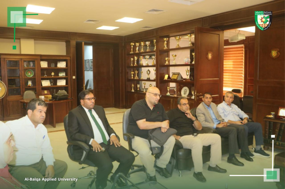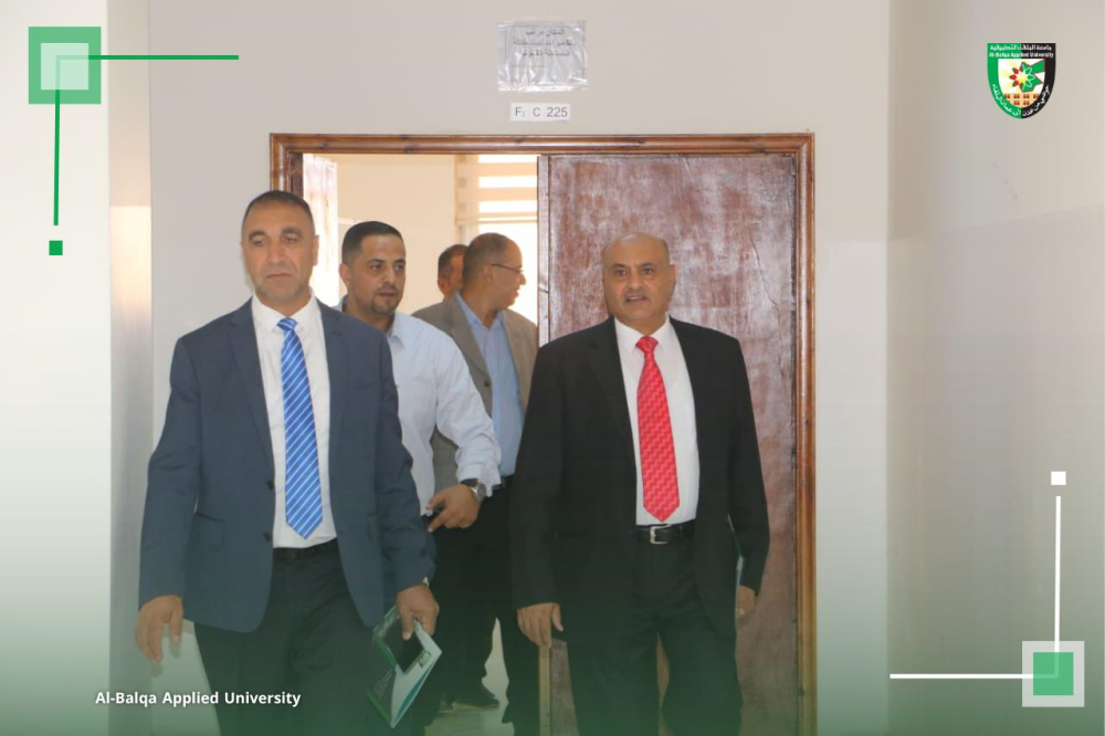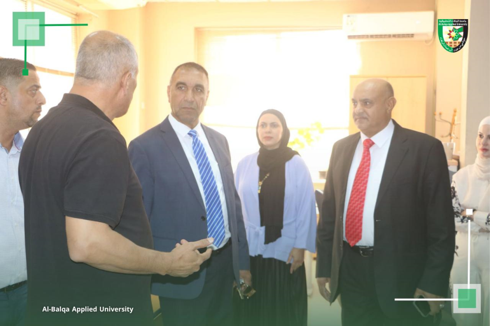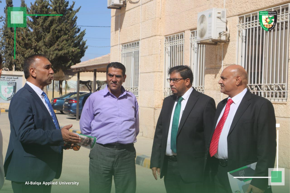 بتوجيهات من رئيس جامعة البلقاء التطبيقية الأُستاذ الدكتور أحمد فخري العجلوني قام نائب الرئيس للشؤون الأكاديمية والتعليم التقني الأُستاذ الدكتور زيد عنبر بزيارة تفقدية لكلية عمان الجامعية، التقى خلالها بعميد الكلية الأُستاذ الدكتور موسى السعودي ونواب ومساعدي العميد ورؤساء الاقسام الأكاديمية وموظفي الكلية .