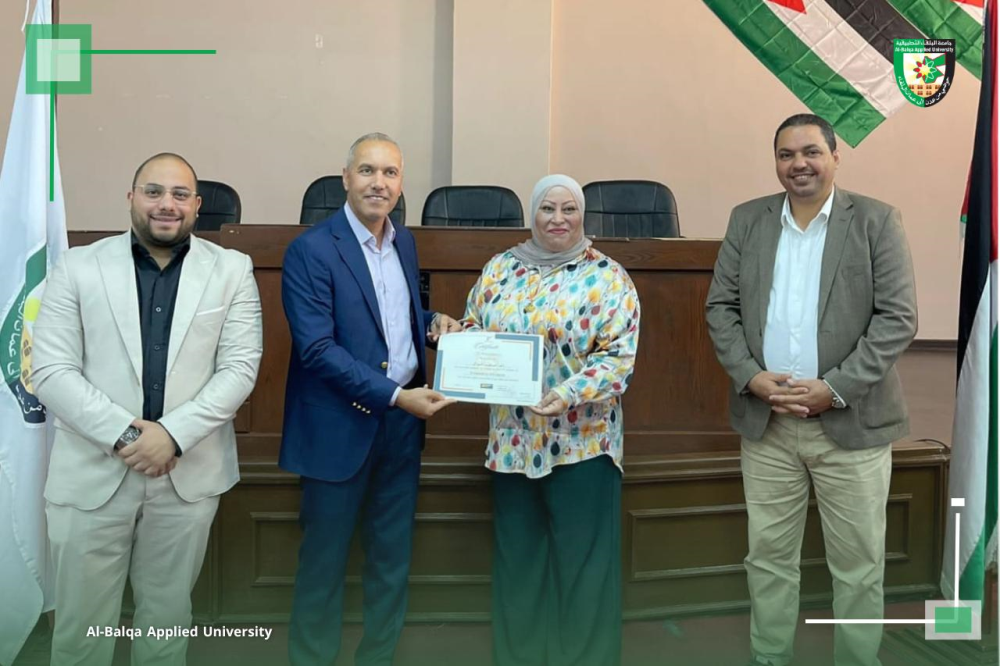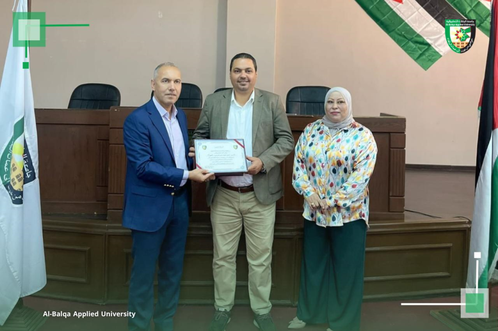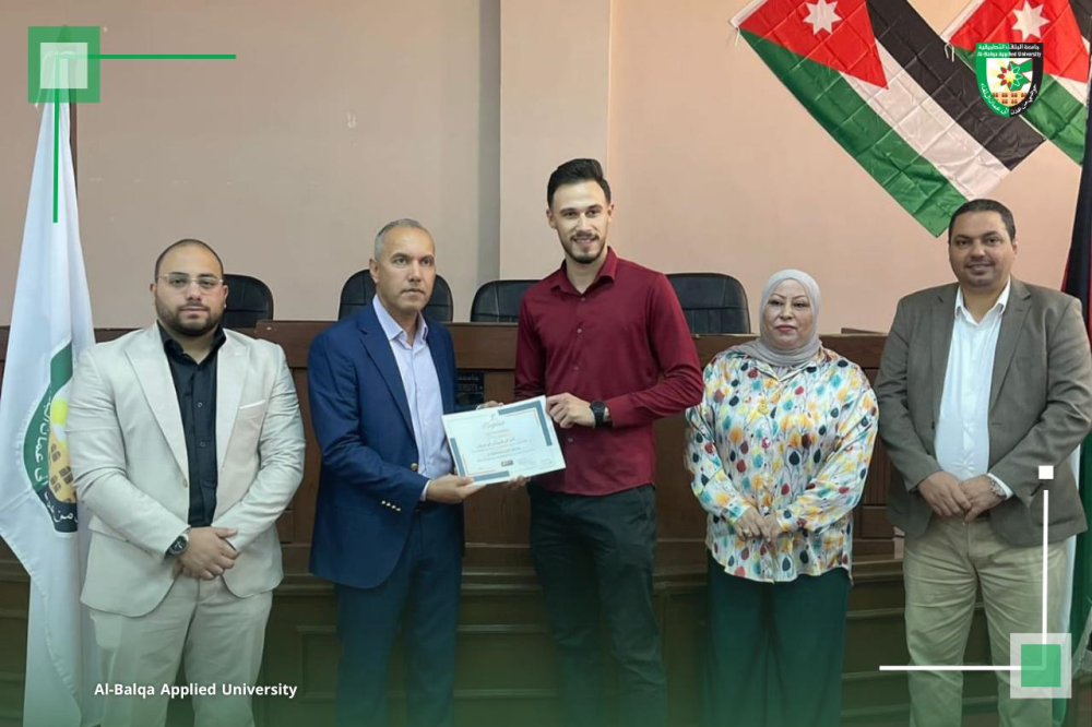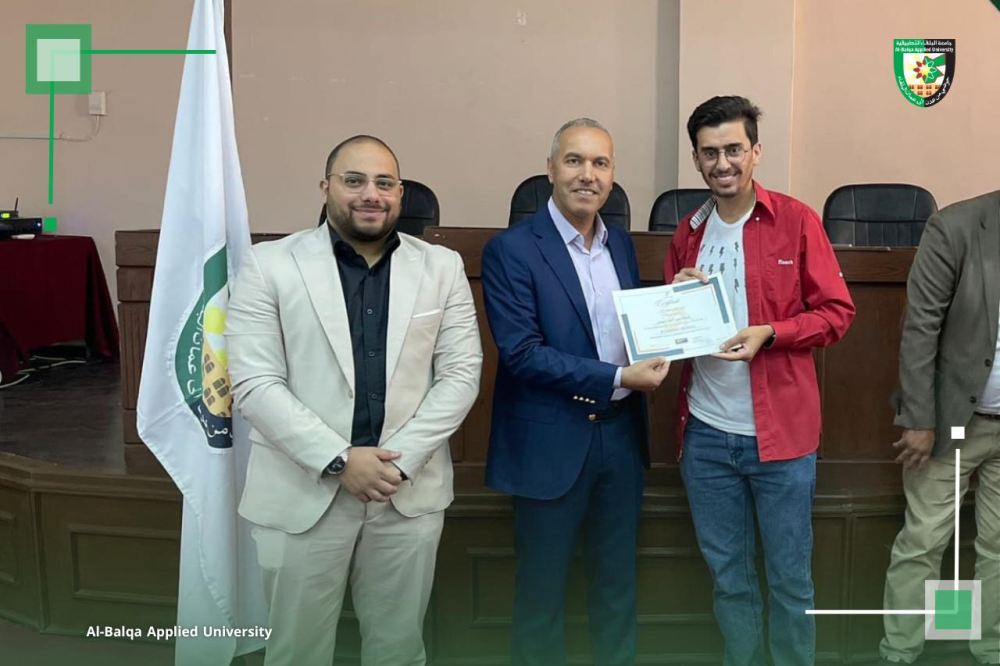 وفي الختام سلم عميد الكلية شهادات شكر وتقدير لكل من مدرب الدورة ومنسق هيئة شباب كلنا الأردن السيد سمير فاخوري ، والذي أشاد بدور الكلية في السعي المستمر لتنمية مهارات الطلبة والمجتمع المحلي، كما تم تسليم الشهادات للطلبة الذين استكملوا البرنامج التدريبي ضمن المعايير الخاصة بالبرنامج وعددهم يقارب (35 طالب) موزعين بين طلبة من الكلية وطلبة من المجتمع المحلي.