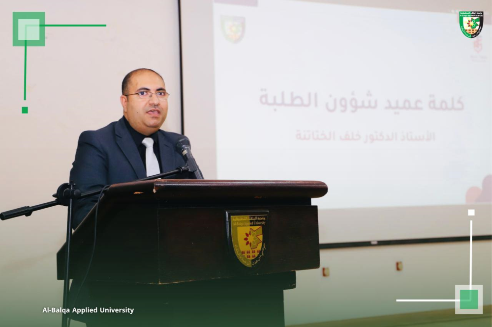 نيابةً عن عطوفة رئيس جامعة البلقاء التطبيقية الأستاذ الدكتور أحمد فخري العجلوني، رعى عميد شؤون الطلبة الأستاذ الدكتور خلف الختاتنة، وبحضور عميد كلية العلوم الأستاذ الدكتور عمر لافي، وأعضاء الهيئتين التدريسية والإدارية، حفل استقبال الطلبة الجدد.