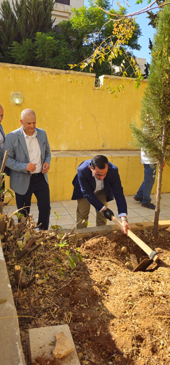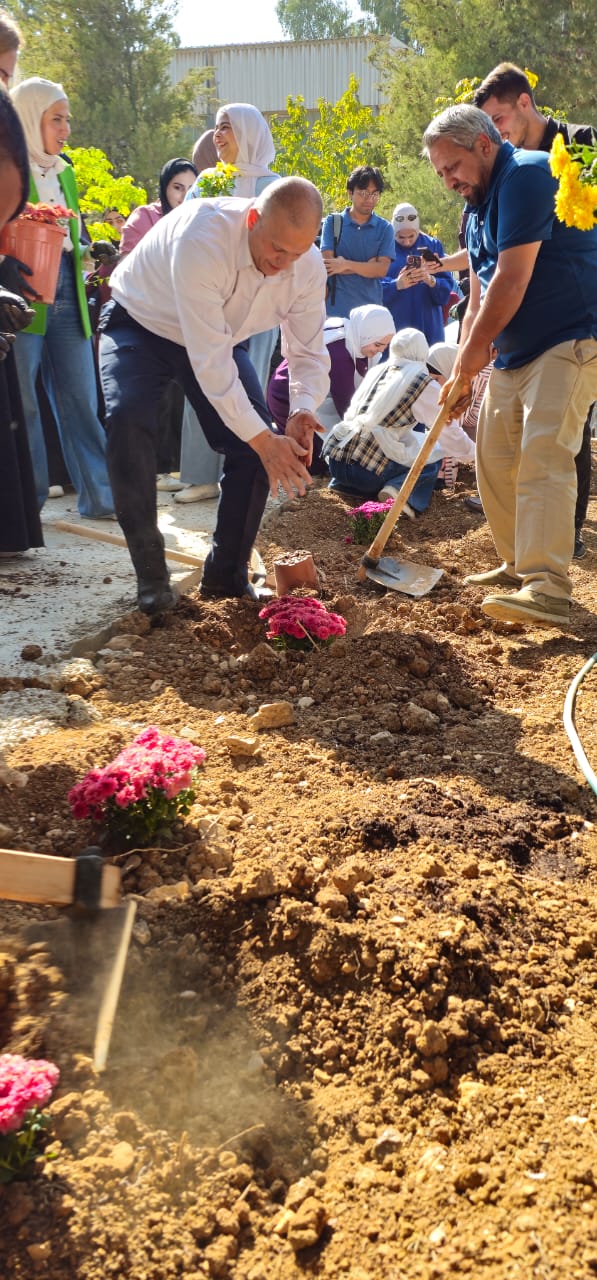حيث أكد الأستاذ الدكتور طارق زياد أبو هزيم خلال الفعالية أهمية توسيع المساحات الخضراء داخل الحرم الجامعي والمساهمة في خلق بيئة صحية مستدامة تعزز قيم المواطنة الفاعلة والانتماء لدى الشباب تجاه مؤسساتهم ومرافقهم العامة. كما أشار إلى اهتمام الدين الإسلامي بالزراعة والعناية بالأرض، مستشهدًا بقول الرسول محمد صلى الله عليه وسلم: (إن قامت الساعة وبيد أحدكم فسيلة فإن استطاع أن لا يقوم حتى يغرسها فليفعل) مبينًا أن هذا الحديث الشريف يعلّمنا دروسًا عظيمة في الإيجابية وحبّ العطاء ويحثّ المسلم على العمل والبناء حتى في أصعب الظروف.
