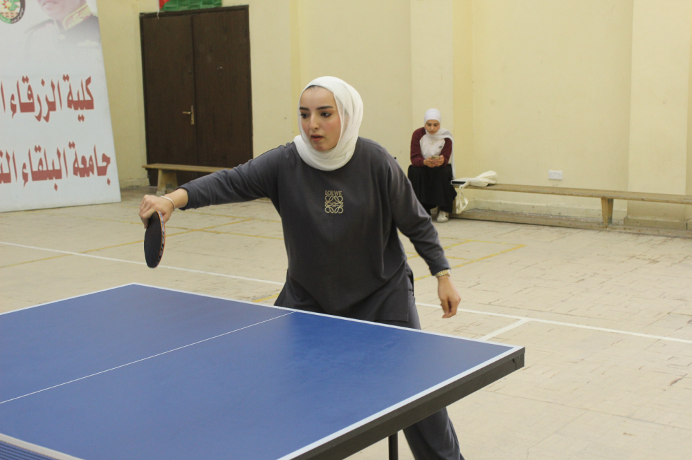 انطلاقًا من توجيهات عطوفة رئيس جامعة البلقاء التطبيقية الأستاذ الدكتور أحمد فخري العجلوني، في تعزيز الأنشطة اللامنهجية، ودعم الطاقات والمواهب الطلابية، وخلق بيئة جامعية مليئة بالحيوية والاندماج الإيجابي بين الطلبة من مختلف الكليات، استضافت كلية الزرقاء الجامعية بطولة كرة الطاولة للطلاب والطالبات، والتي نظمها الاتحاد الرياضي للكليات الجامعية والجامعية المتوسطة ،بحضور نائب عميد الكلية الدكتور ضياء الدين حسن ، مندوبا عن عميد الكلية ،ومدير دائرة النشاط الرياضي في عمادة شؤون الطلبة صالح أبو رمان، وبمشاركة واسعة من الكليات الجامعية الحكومية والخاصة، شملت: مركز الجامعة، عمان الجامعية، إربد الجامعية، الهندسة التكنولوجية، الزرقاء الجامعية، الحصن الجامعية، لومينوس الجامعية، الطفيلة التقنية، الكرك الجامعية، والخوارزمي الجامعية.