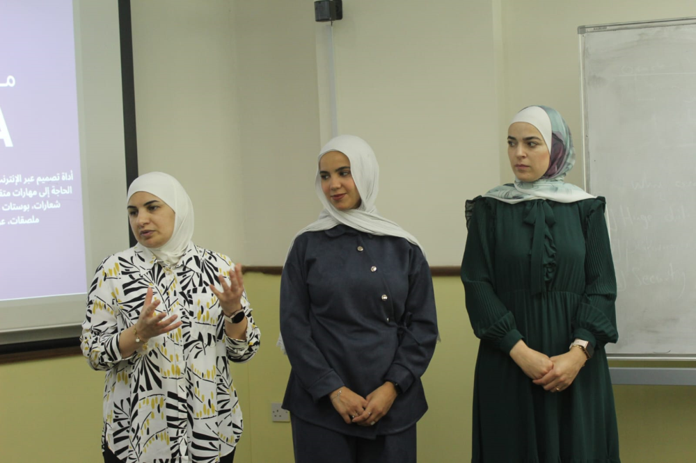 وهدفت الورشة إلى تعريف الطالبات بأساسيات التصميم الرقمي باستخدام منصة Canva، وتمكينهن من التصميم الإبداعي من خلال أدوات التصميم الحديثة، بما يسهم في تنمية مهاراتهن التقنية والفنية.