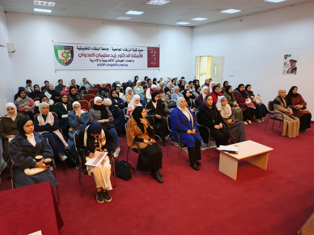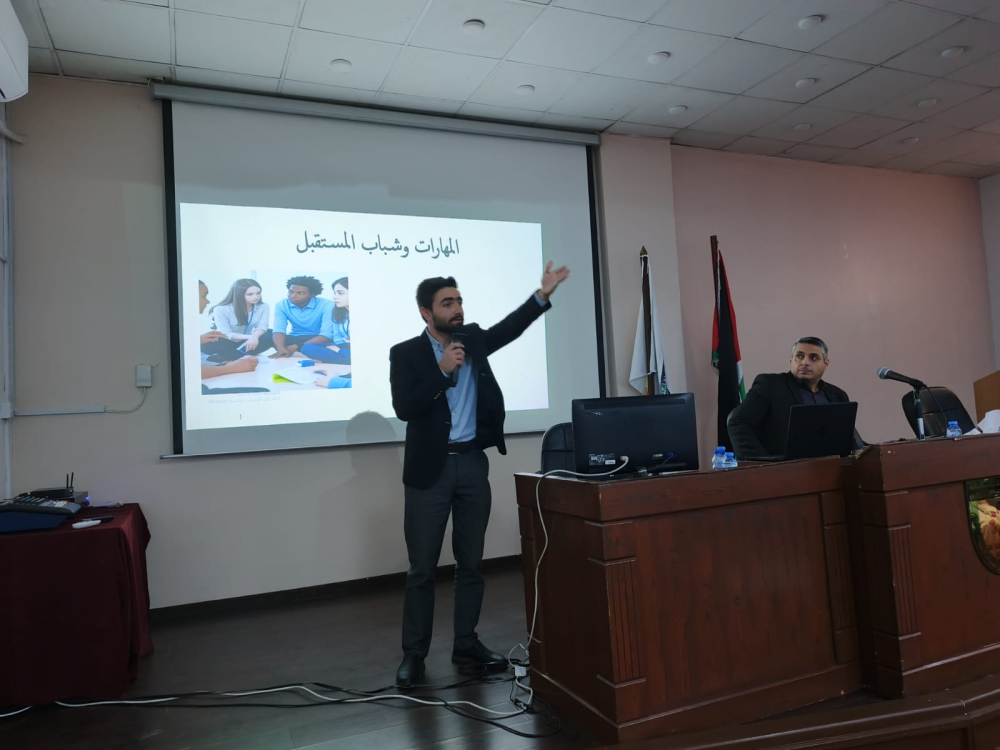 أقامت كلية الزرقاء الجامعية / جامعة البلقاء التطبيقية وبالتعاون مع مؤسسة ولي العهد / مكتب الزرقاء جلسة تعريفية "حول المهارات المطلوبة لسوق العمل" ، وذلك في اطار التزام جامعة البلقاء التطبيقية بتحقيق أهداف التنمية المستدامة وخصوصا الهدف (SDG4) (التعليم الجيد) ، وبحضور الدكتور ضياء حسن نائب عميد الكلية ومساعد العميد لشؤون التخطيط والتطوير والجودة ورئيس قسم العلوم الإدارية والمالية وطلبة الكلية.