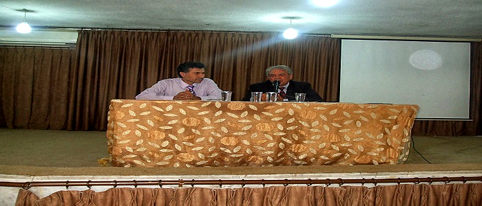 وفي نهاية المحاضرة اجاب المحاضر على اسئلة الحضور وطلبة الكلية .
