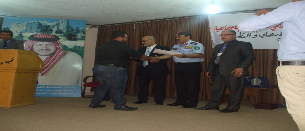 وتخلل اليوم العلمي كلمة توعوية لمدير شرطة عجلون العميد زياد باكير بمناسبة تخريج دورة البحث الجنائي التي عقدت في الكلية بالتعاون مع مديرية شرطة عجلون ،والاعلان عن افتتاح دورة جديدة بعنوان (إنقاذ القانون وحقوق الانسان ) وفي نهاية اليوم العلمي اجاب المشاركين على اسئلة واستفسارات الحضور. وسلم عميد الكليةالدكتور علي القضاه الدروع لمستحقيها المشاركينفي اليوم العلمي الاستاذ الدكتور عاطف عضيبات والعميد زياد باكير مدير شرطة عجلون والدكتور احمد الحنيطي ومدير البحث الجنائي الرائد سائدالبداينه والداعمين المحامي جهاد الحصان والسيد امين المومني .