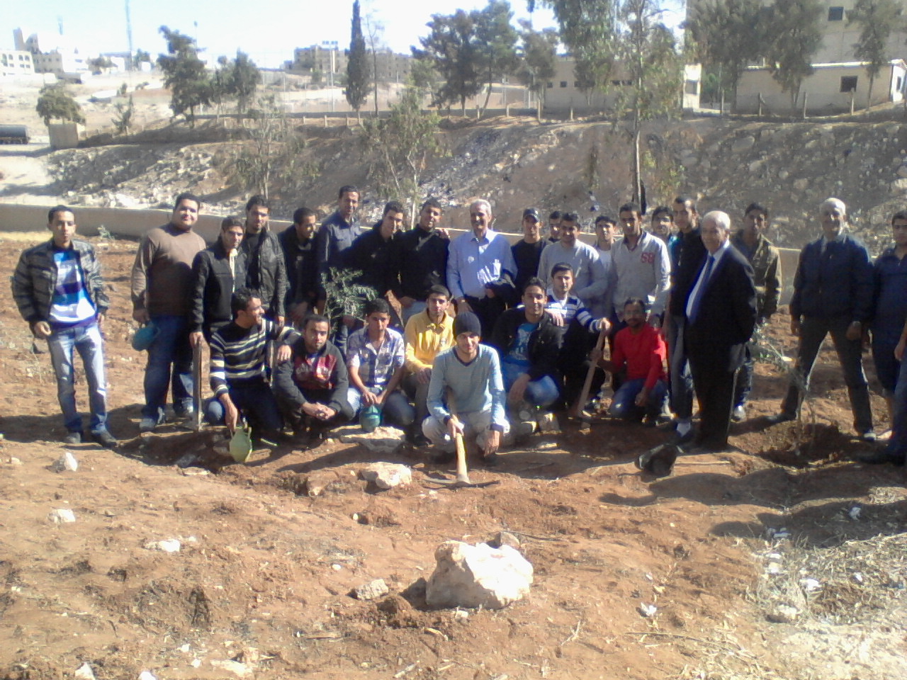 بإذنه تعالى جلالة الملك الحسين بن طلال طيب الله ثراه ، بزراعة حديقة الزيتون في حرم الكلية باشراف الدكتور احمد الربابعة