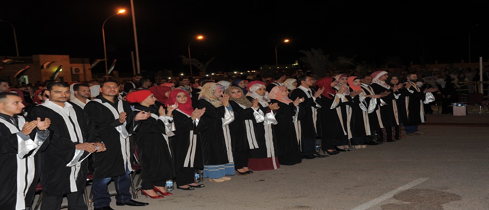 وألقى عميد الكلية كلمةً رحب فيها بالأهل والضيوف الكرام واصفاً يوم التخريج بيوم الحصاد نتيجة جهود مبذولة من قبل الأهل والطلبة والمدرسين وإن جامعة البلقاء تسعى دائماً إلى الموائمة بين الجانب العلمي والنظري والتوسع في عملية التعليم وذلك بفتح تخصصات نوعية وفريدة على مستوى المنطقة سواء على الصعيد المحلي أو الإقليمي لطلبة البكالوريوس واستحداث تخصصات لمرحلة الدبلوم منها الصيدلة والقباله وفنون الطهي وغيرها من التخصصات التي تخدم المجتمع المحلي كما وقد قام بتوزيع الشهادات على الطلبة وسط فرحة جماهيرية عارمة على أهازيج الأغاني الوطنية .