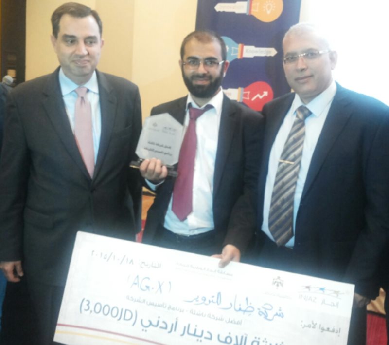 وهنأ الأستاذ الدكتور يحيا خريسات الطلبة الفائزين بالجائزة الاولى في مسابقة انجاز والتي بلغت قيمتها 3000 دينار وسلمها لهم معالي وزير التخطيط والتعاون الدولي المهندس عماد فاخوري ونقل للفائزين تحيات الأستاذ الدكتور نبيل الشواقفه رئيس جامعة البلقاء التطبيقية وسط حضور متميز لمشاريع طلبة جامعة البلقاء التطبيقية