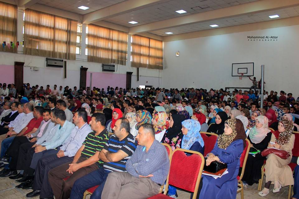 واستهل الاحتفال بالسلام الملكي ثم بالوقوف دقيقة صمت وقراءة الفاتحة على أرواح شهداء فلسطين وعلى روح الطالب أوس سمارة الزعبي الذي توفي إثر حادث سير مؤسف وبعد تلاوة القرآن الكريم ألقى عميد الكلية كلمة نقل فيها تحيات الأستاذ الدكتور نبيل الشواقفه رئيس جامعة البلقاء التطبيقية وأمنياته وأسرة الجامعة للجميع بالنجاح والتوفيق