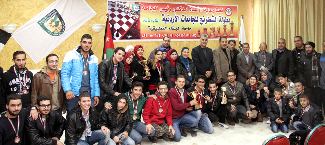 ظفر فريق جامعة البلقاء التطبيقية بلقب بطولة الشطرنج للجامعات الأردنية طلاب فيما ظفر فريق الجامعة الأردنية بلقب البطولة ذاتها للطالبات.