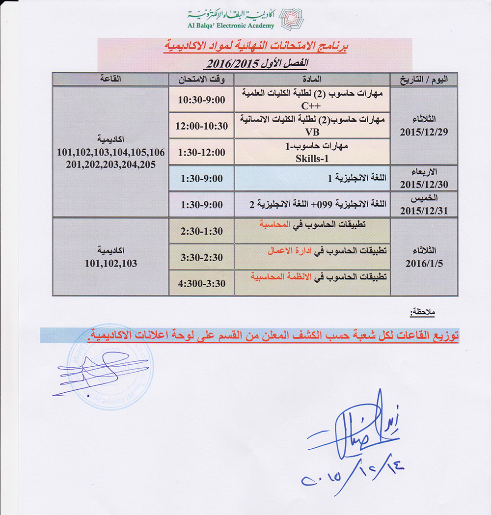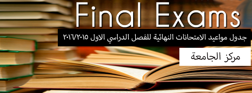 جدول مواعيد الامتحانات النهائية للفصل الدراسي الاول 2015/2016 - مركز الجامعة