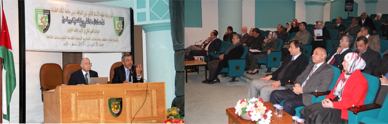 الدكتور نبيل الشواقفة رئيس الجامعه رحب بالضيوف مبينا اهمية انعقاد مثل هذه الورش التدريبية في الجامعات ومنها جامعة البلقاء التطبيقية معتبرا اياها بانها تمثل بداية واضحه لتطوير التعليم العالي في الاردن وكونها تركز على كيفية اعداد مقترحات المشاريع البحثية التي تتعلق بجميع المجالات العلمية داعيا الى الاستفادة من تلك الورش التدريبية حتى نساهم في العمل على تحقيق الاهداف المرجوة منها مؤكدا على ان الجامعة تسعى على الدوام لاحتضان مثل هذه الورش التدريبية الهامه.