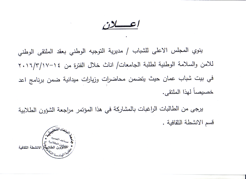اعلانات قسم الشؤون الطلابية كلية الهندسة التكنولوجية راجع المرفق