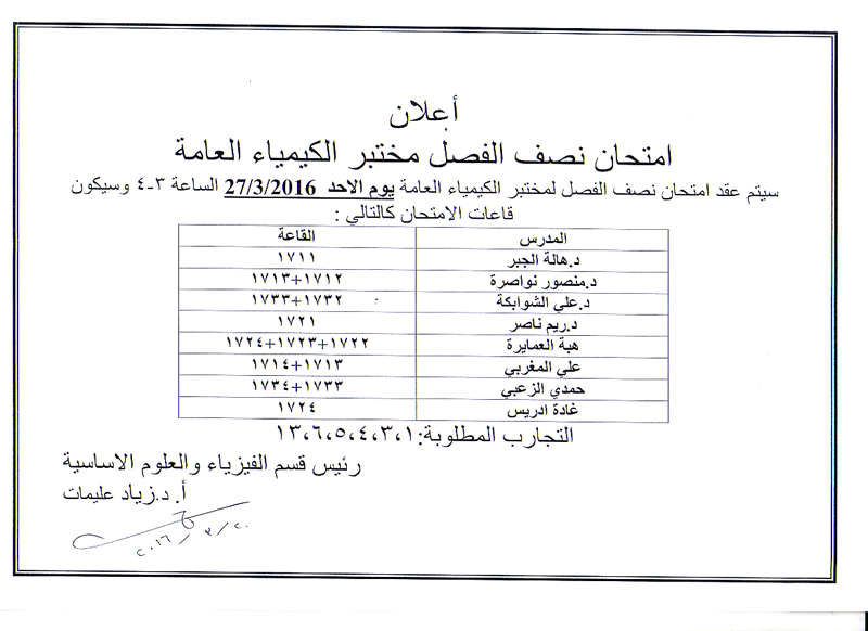 امتحان نصف الفصل مختبر الكيمياء العامة كلية الهندسة التكنولوجية
