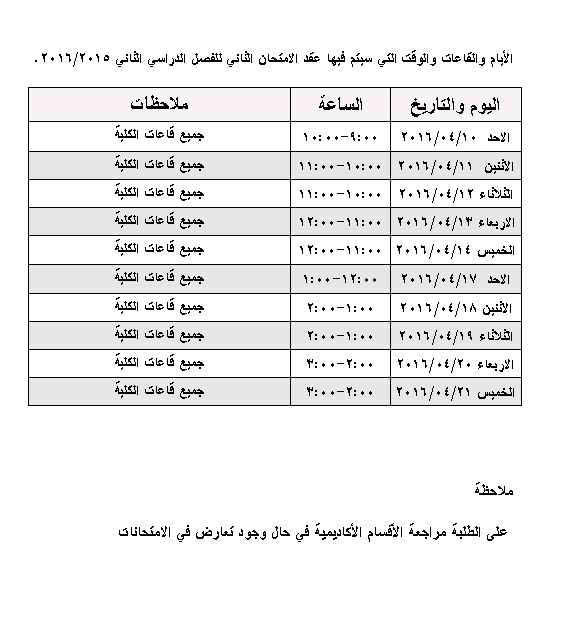 جدول الامتحان الثاني بكالوريوس + دبلوم كلية الهندسة التكنولوجية