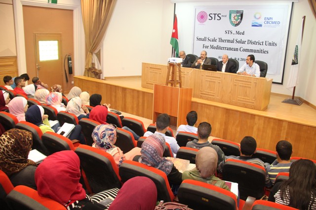 المهندس حمزه الصمادي استعرض اهمية الطاقة الشمسية خصوصا في الاردن مشيرا الى انها وفي غضون سنوات قلائل سوف تعتبر الطاقة الشمسية مصدرا فعالا للطاقة حيث انه يجرى ابحاث وتجارب على كيفية استغلالها لتكون فيما بعد موردا للطاقة وبتكاليف قليلة منوها الى شركة حنانيا قامت بعمل محطات للطاقة الشمسية في مركز الجامعة وكلية الحصن الجامعة مؤكدا على نجاح تلك التجربتين الهادفتين الى تقليل ثمن الفاتورة الكهربائية على جامعة البلقاء التطبيقية . كما تحدث المهندس الصمادي عن مجالات عديدة يمكن ان تستغل فيها الطاقة الشمسية في الاردن لتكون موردا بديلة للطاقة