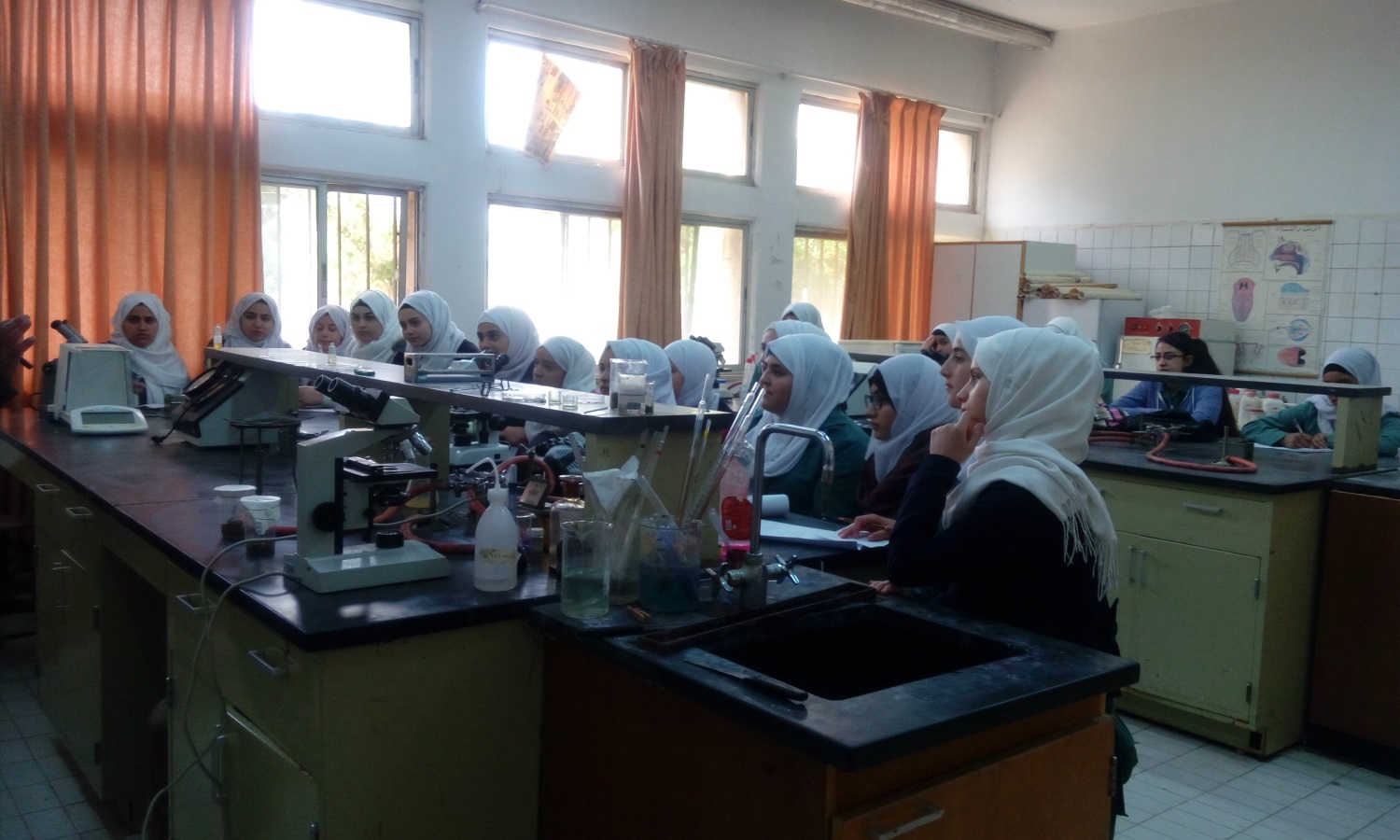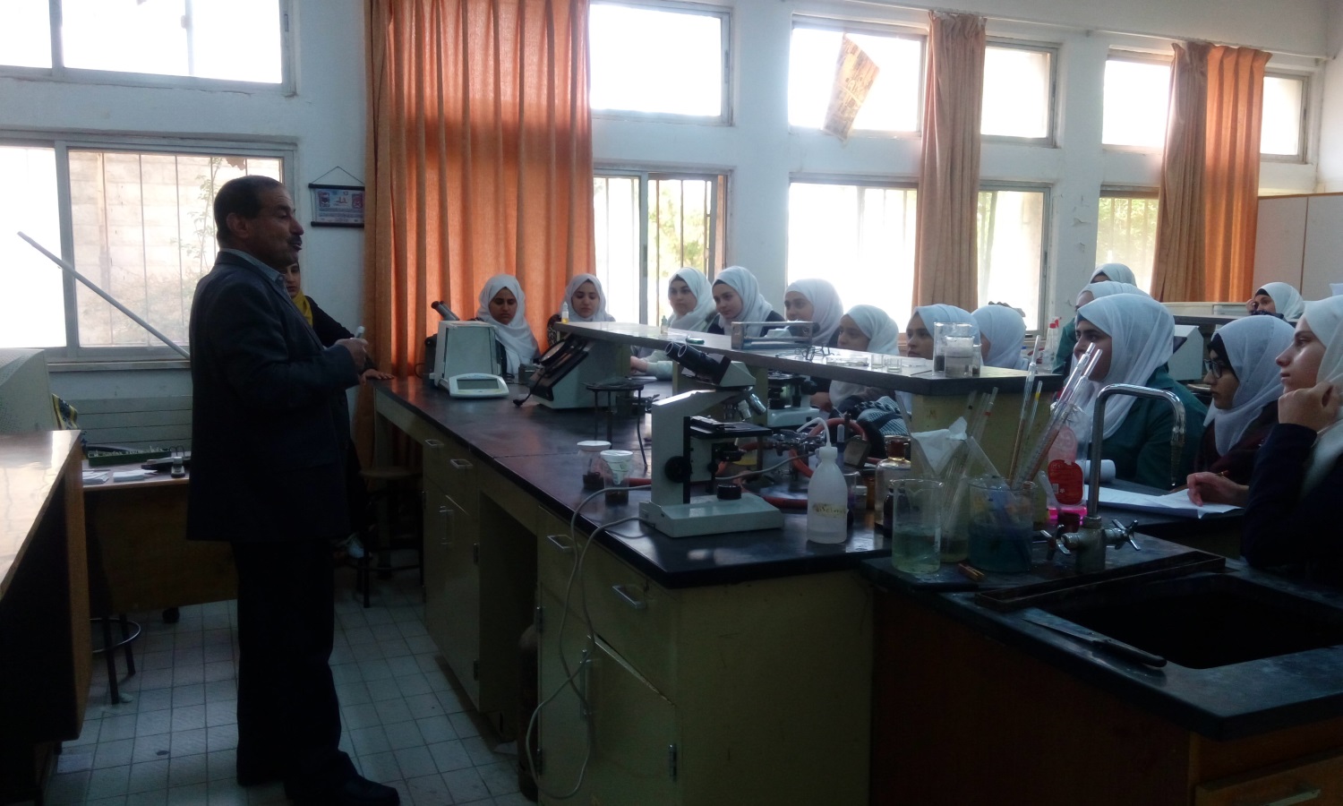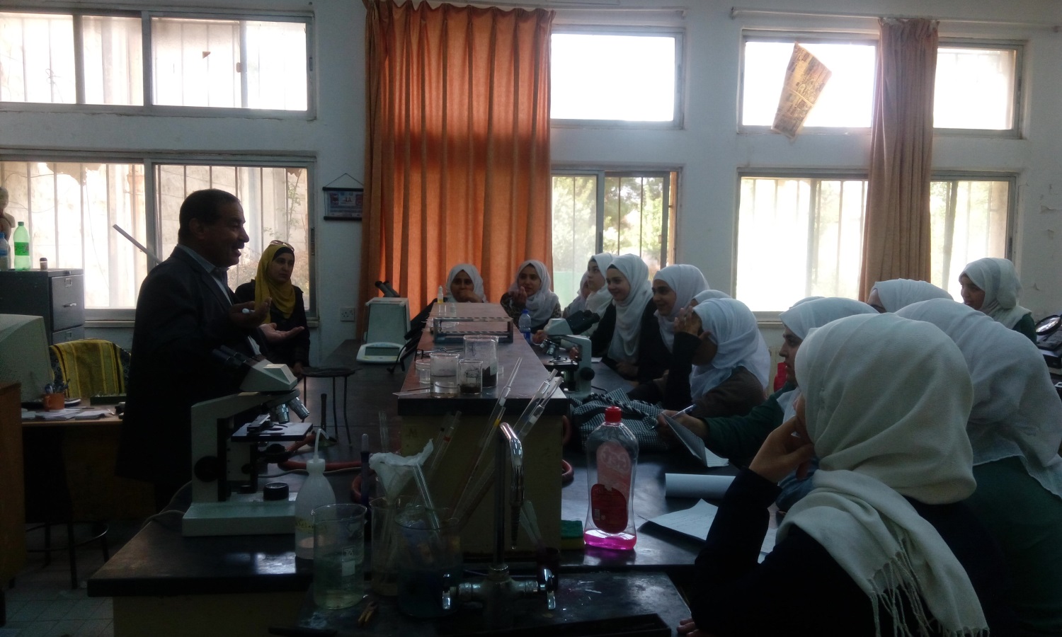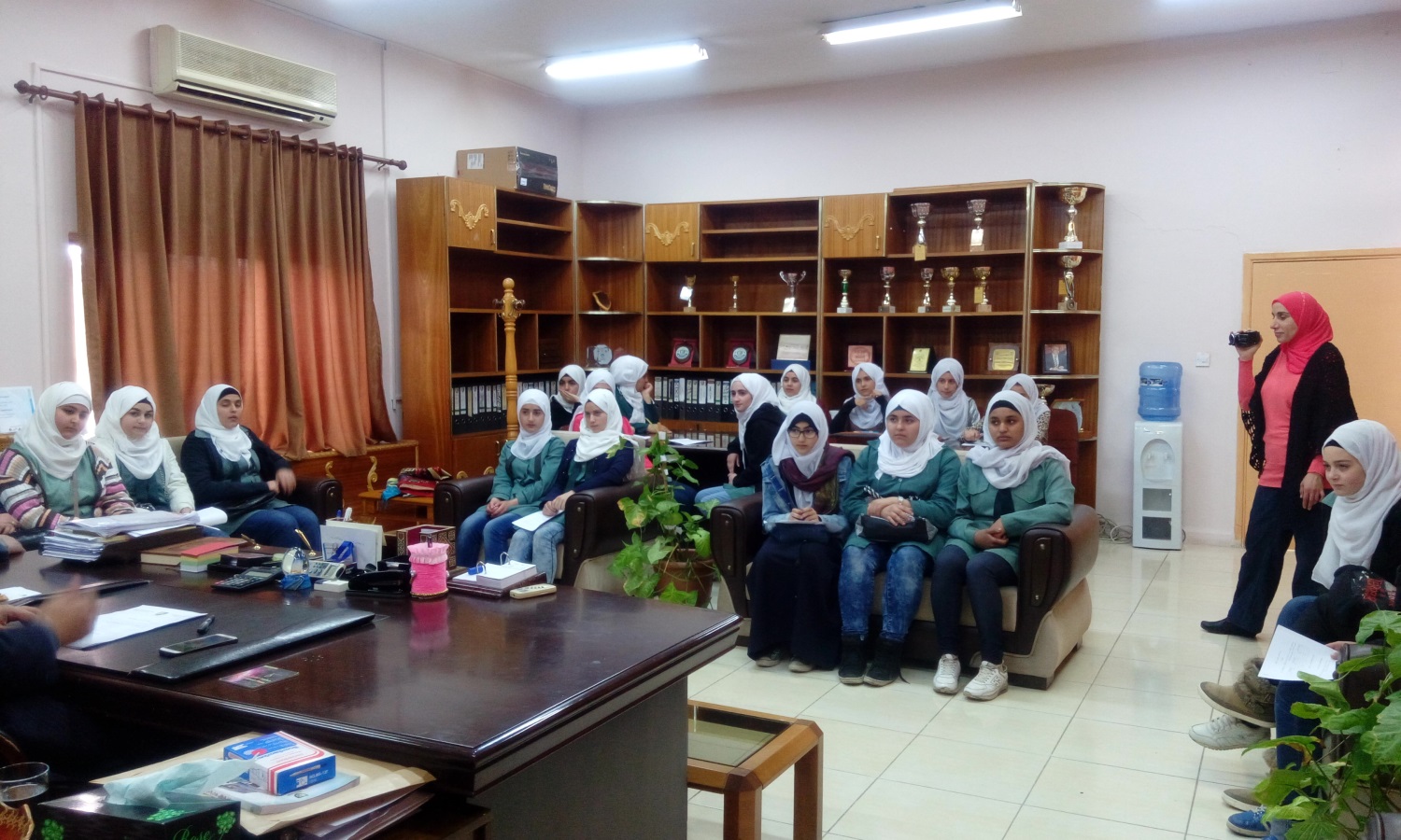 استقبل الأستاذ الدكتور يحيا خريسات عميد كلية الحصن الجامعية في مكتبه وفدا من الطالبات المتميزات في الصف العاشر من طالبات مدرسة الحصن الأساسية المختلطة حيث جاءت الزيارة بتنسيق ومتابعه حثيثة من مديرة المدرسة المربية الفاضلة لانا الحوراني وبإشراف مدرستين من المدرسة هما الآنسة إيمان الأحمد والآنسة ختام الصقر حيث جاءت الزيارة بهدف اطلاع الطالبات على المختبرات والمشاغل في الكلية.