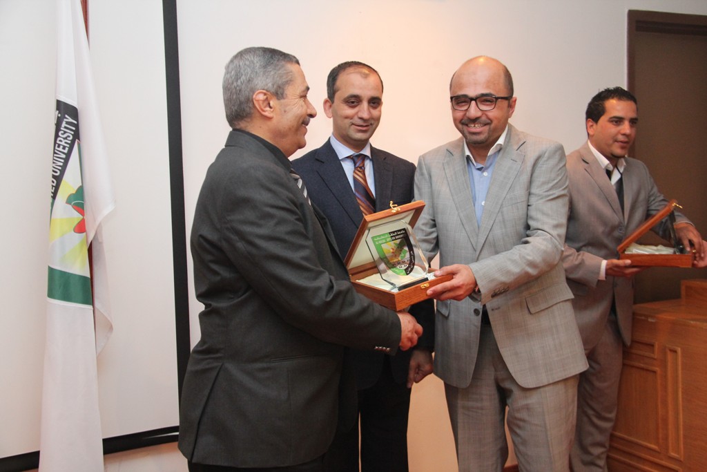 وفي ختام الحفل قام الاستاذ الدكتورئيس الجامعة بتسليم عمداء الكليات المتميزة درع الجامعة ، وهي كلية الخوارزمي حيث استطاعت الكلية انشاء اكاديمية متخصصة بعقد الدورات التدريبية بتميز، بالاضافة الى احتوائها على اجهزة حديثة ،كما قدم الدكتور الشواقفة درع الجامعة لكلية القدس لتنوع الدورات التدريبية التي تعقدها بالاضافة الى انضباطها المتميز في التقيد بتعليمات مركزالاستشارات ، كما سلم الاستاذ الدكتورالشواقفة عميد كلية توليدو درع الجامعة لدعمها اللوجستي للبرنامج الذي سيقد لاحقا في مركز الاستشارات والدراسات والتدريب .