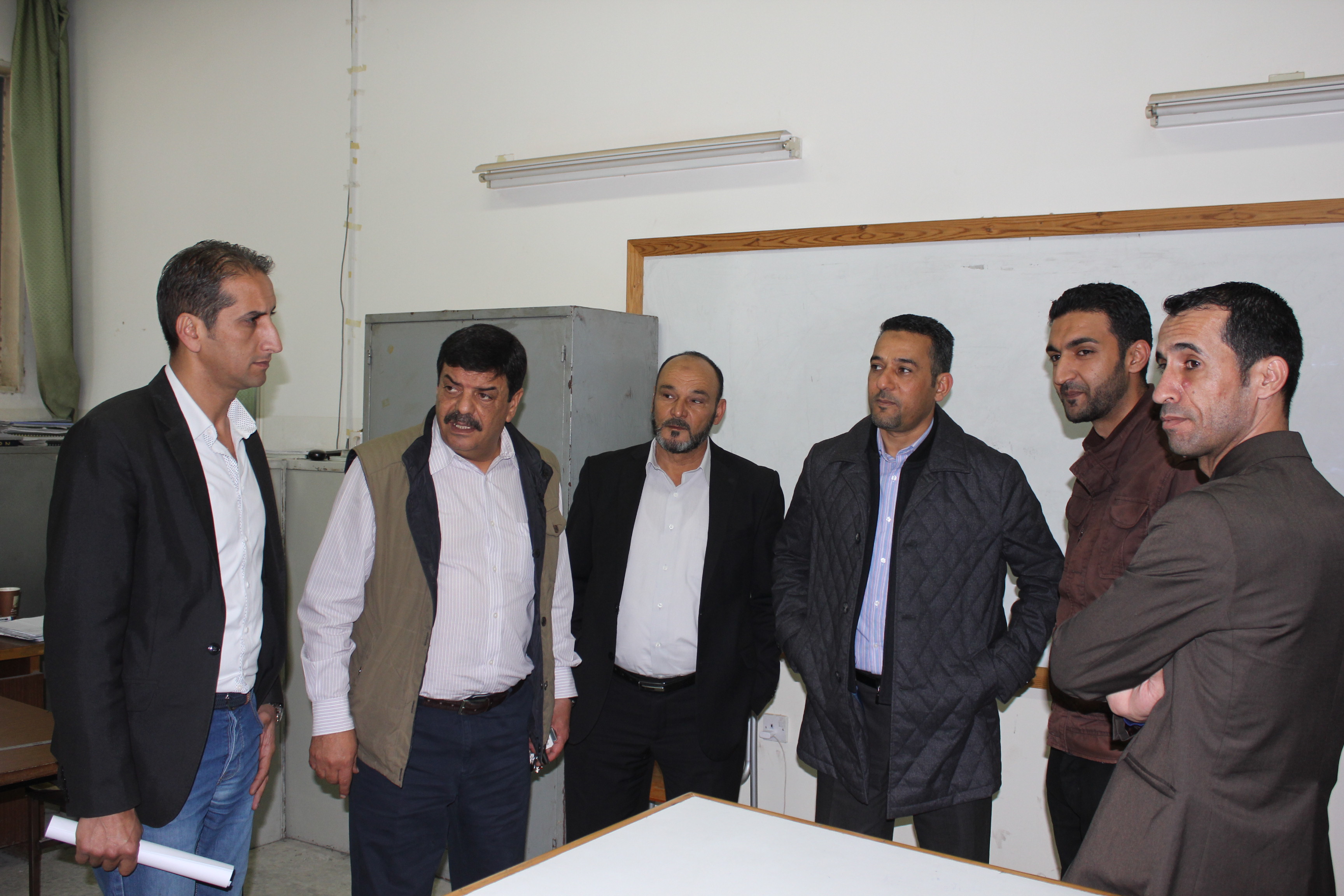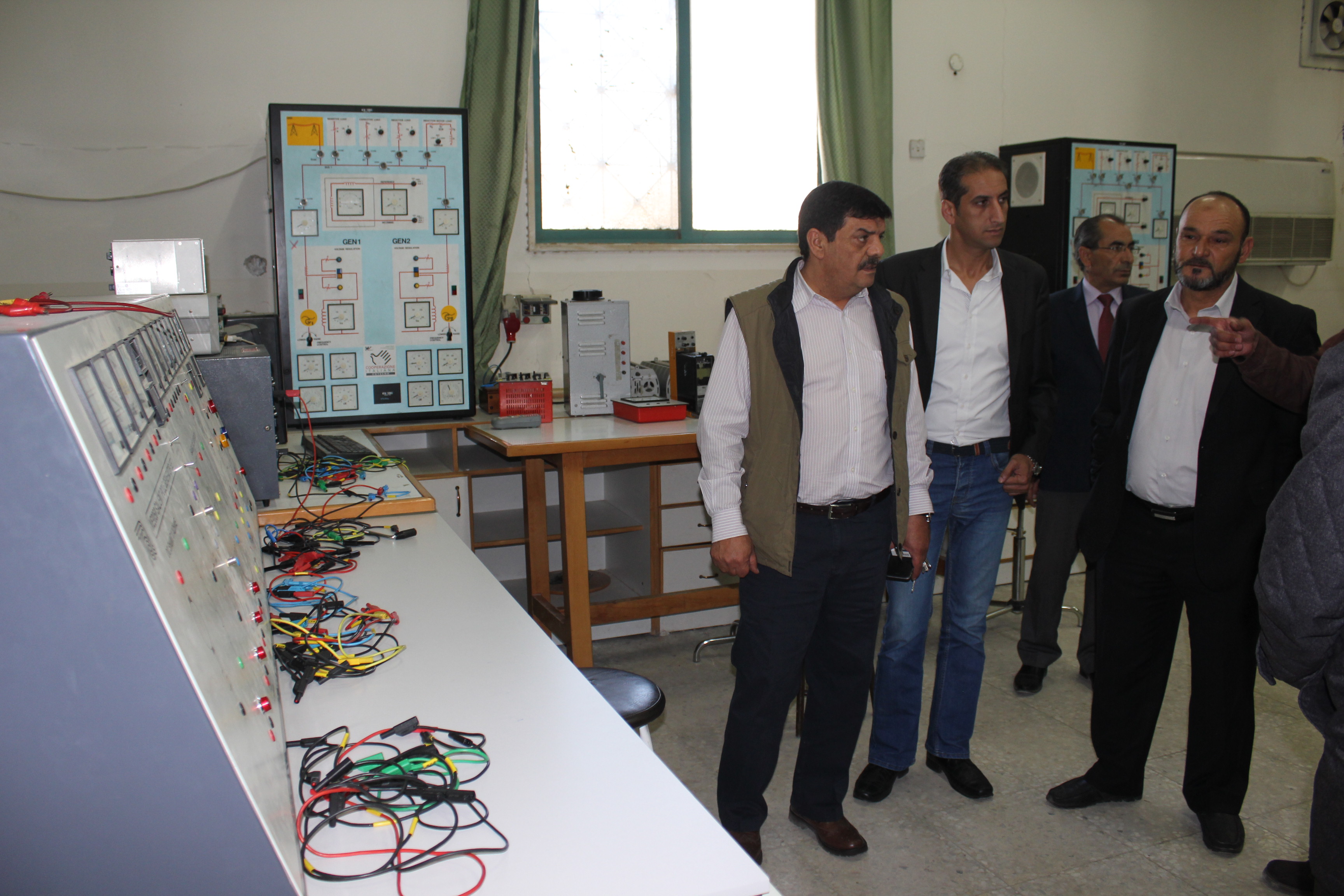 وفي بداية اللقاء رحب الدكتور العنبر بالوفد حيث قدم شرحاً عن التخصصات الهندسية الموجودة في كلية الهندسة التكنولوجية على مستوى برنامج الماجستير والبكالوريوس والدبلوم ومن ثم قام الوفد بجولة شملت مختبرات ومشاغل الكلية اطلعوا فيها على الأجهزة والمعدات المتوفرة في الكلية والتي تخدم القطاع التعليمي والتدريبي.
