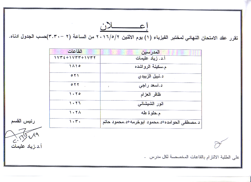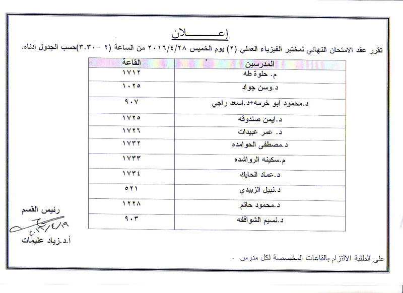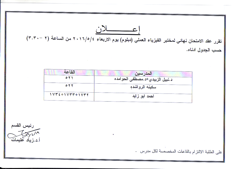الامتحان النهائي قسم العلوم التطبيقية كلية الهندسة التكنولوجية