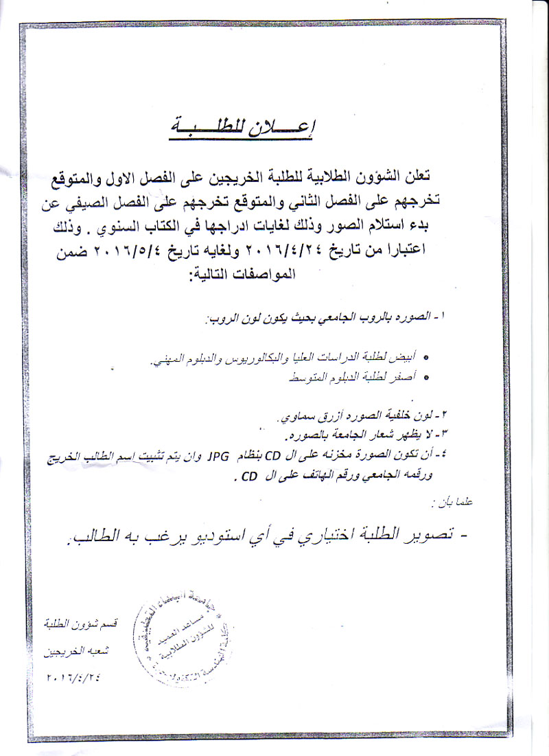 اعلان لطلبة كلية الهندسة التكنولوجية