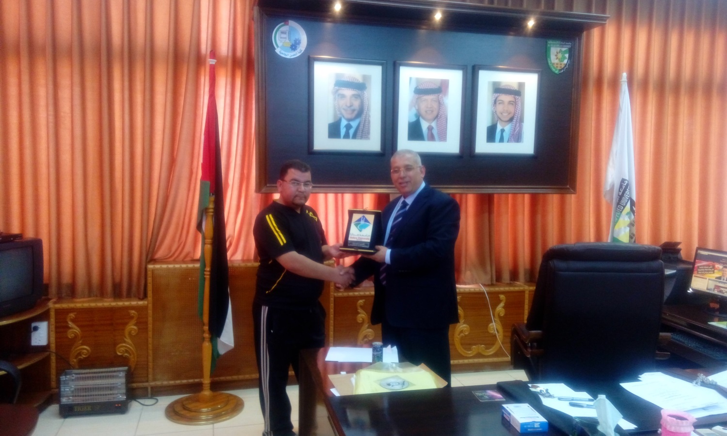وسلم الدكتور شكري مراشدة رئيس هيئة المديرين راعي الفعاليات درع جامعة جدارا لمندوب الكلية ومنسق الوفد المشارك تقديرا وعرفانا لدور كلية الحصن الجامعية في الأنشطة والفعاليات الرياضية على المستوى المحلي وللمشاركة المتميزة في فعاليات سباق الضاحية.