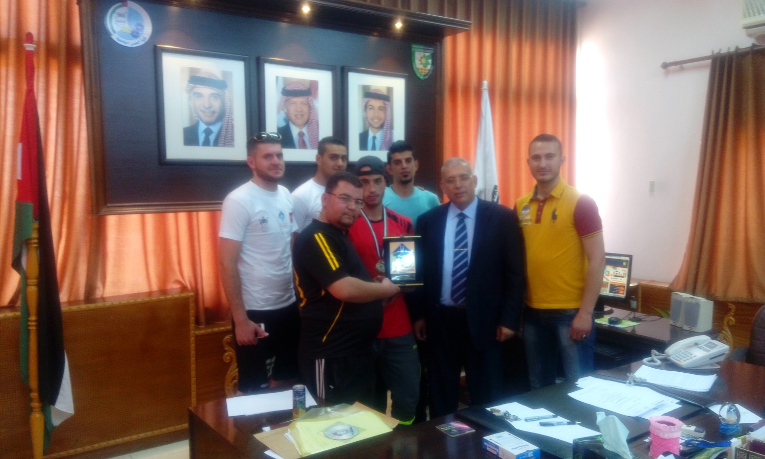 وقد استقبل عميد الكلية الأستاذ الدكتور يحيا خريسات في مكتبه الوفد المشارك من طلبة الكلية والمشرفين وقدم الوفد درع جامعة جدارا والميدالية الذهبية هدية لعميد الكلية حيث أعاد الميدالية للطالب هيثم أبو كشك تخصص هندسة الاتصالات والبرمجيات ووجه الشكر والتقدير له ولزملائه المشاركين الذين حصلوا على مراكز متقدمة في السباق.
