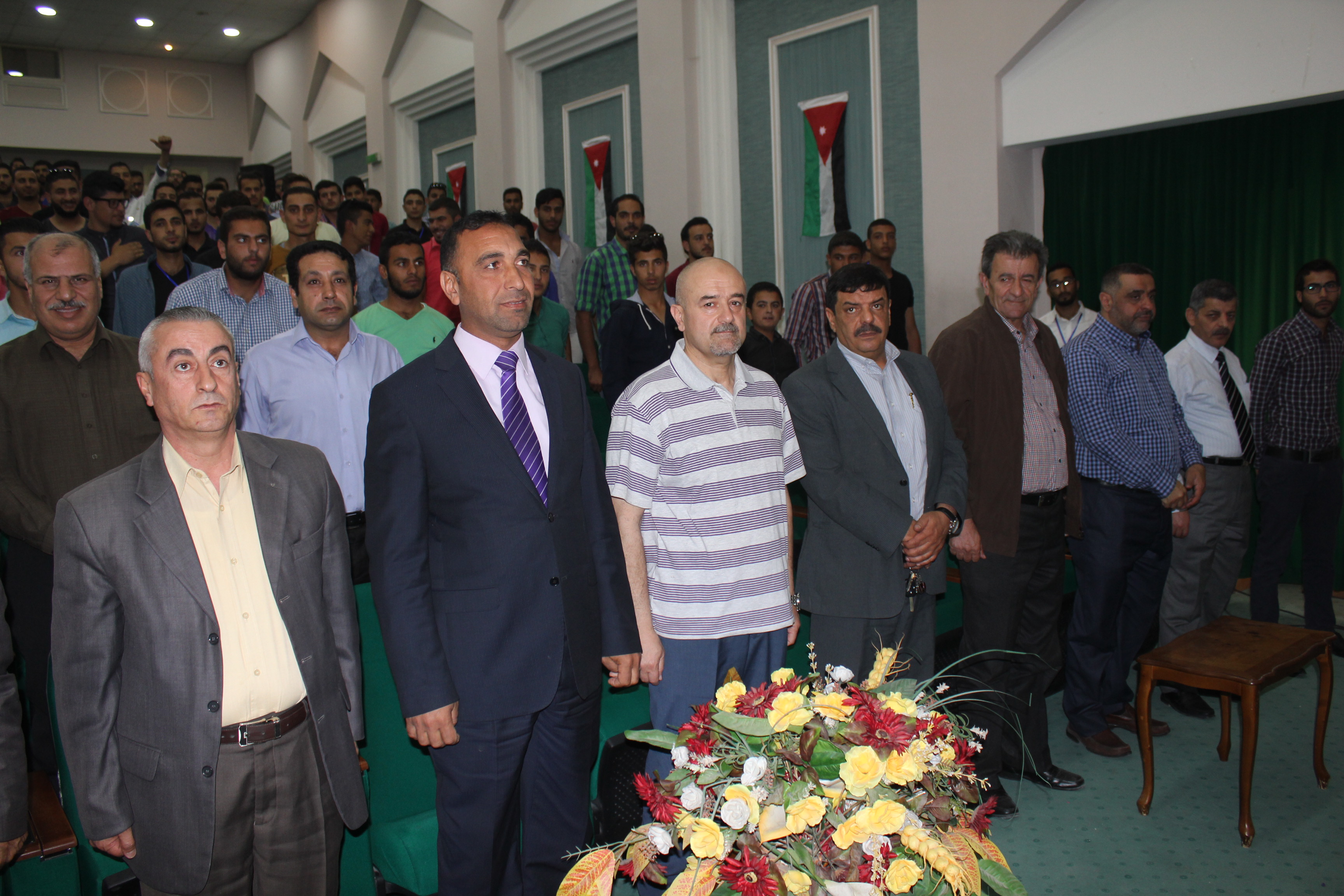 وقد القى عميد الكلية كلمة بدأها بالمباركة والتهنئة الى سيد البلاد حامي عرين الاردن جلالة الملك عبدالله الثاني المعظم بهذه المناسبات الوطنية باسمه وباسم اعضاء الهيئتين التدريسية والادارية وطلبة الكلية .