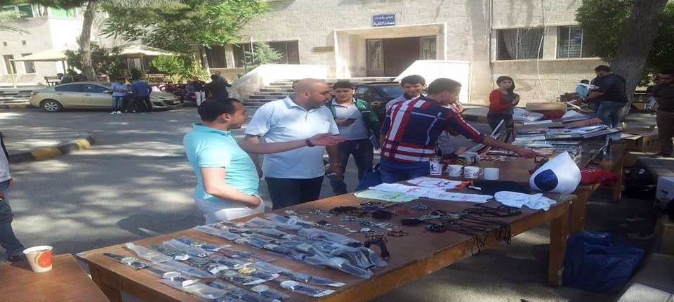 برعاية الدكتور هيثم الشبلي العبادي عميد كلية عمان الجامعية المحترم اقامة كلية عمان الجامعية ضمن نشاطا تها وبالتعاون مع قسم الشؤون الطلابية ممثله بالدكتوره مساعد العميد للشؤون الطلابية فاطمة زين العابدين , بازارا خيريا في حرم كلية عمان الجامعية اليوم الاحد 24/4/2016 ولقد لاقى البازار رواجا بين الطلبة داخل الكلية الذي تضمن بعض الاعمال من الطلبة المشتركين ومعرضا للكتب والوحات الفنية التي قامت برسمها احدى الطالبات . شاكرين كل من ساهم في انجاح هذا البازار .