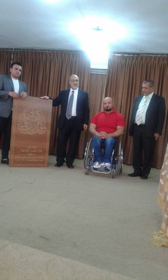 وعرض البطل قصة نجاحه وتجربته الشخصية على ارض الواقع،وتحدث عن ارادته القوية رغم اعاقته الحركية في الوصول الى درجة الماجستير في المحاسبة وحرصه الدائم على تطوعه في النشاطات الشبابية لتطوير المجتمع وتحسينه، فهو عضو مؤسس في هيئة شباب كلنا الاردن .وارادته القوية حتى اصبح بطلا عالميا ، مبينا أن اعاقته لم تقف حاجزا في طريق مشاركته في رياضة رفع الاثقال .