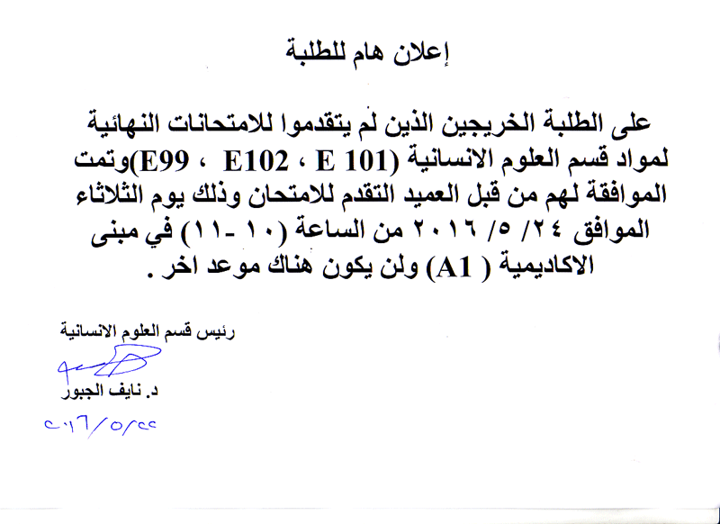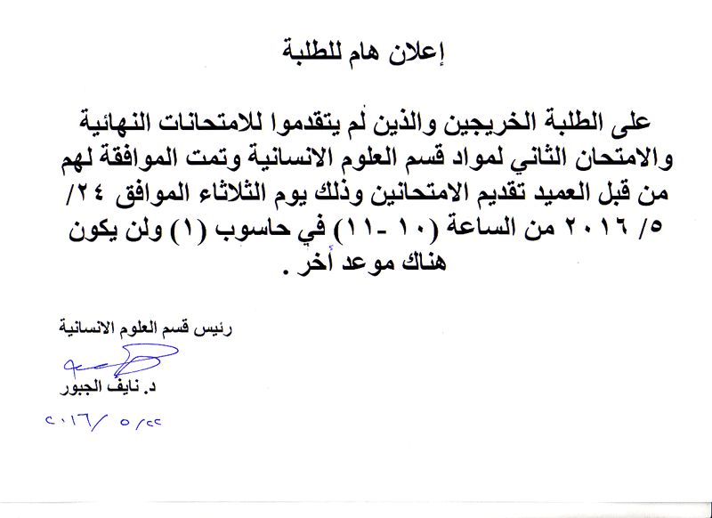 اعلان هام للطلبة كلية الهندسة التكنولوجية