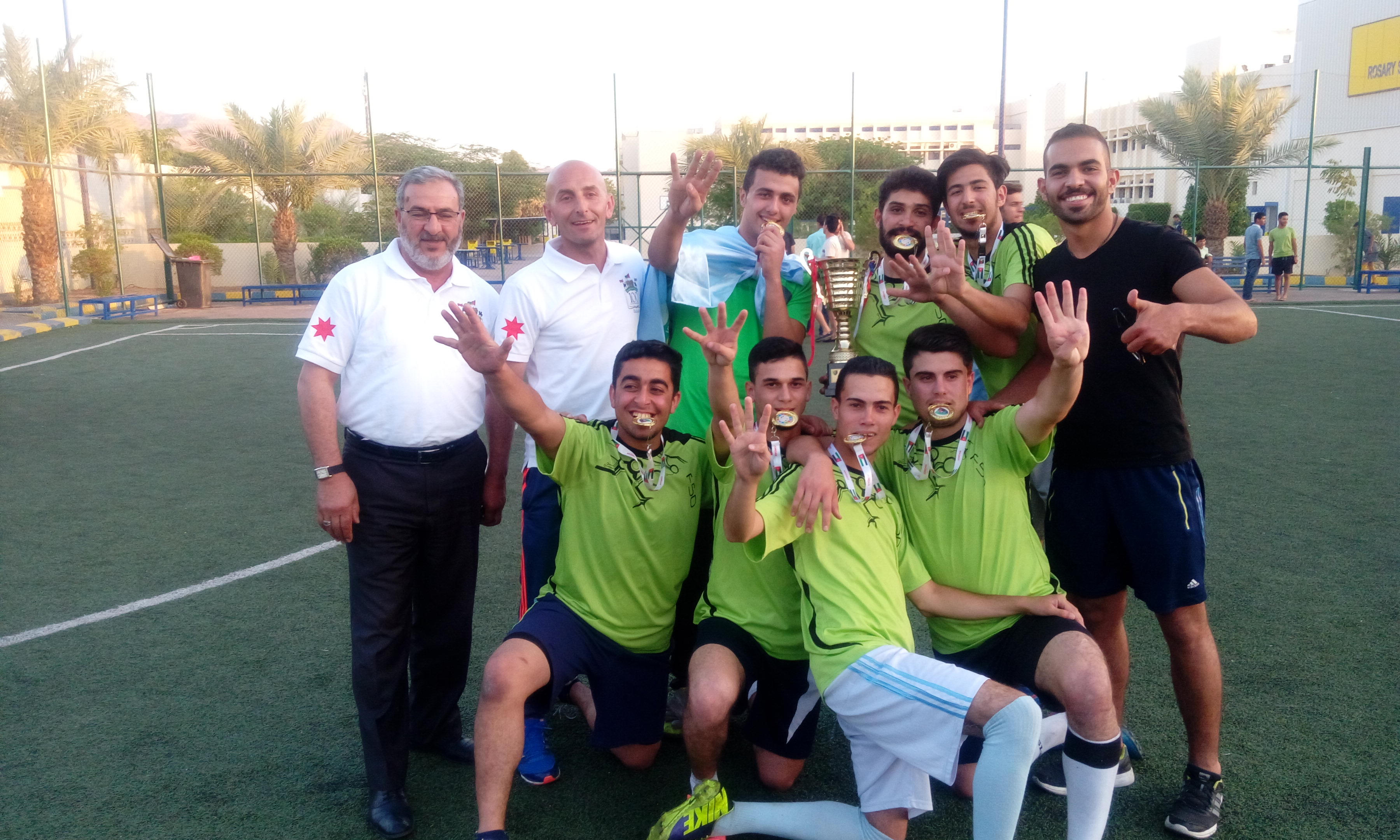 بالعلامة الكاملة وبجدارة واستحقاق ودون اي خسارة في البطولة او تعادل فاز فريق كلية الحصن الجامعية بالمباراة النهائية لبطولة خماسي كرة القدم التي ينظمها الاتحاد الرياضي للكليات والكليات الجامعية المتوسطة والتي اقيمت تحت رعاية الاستاذ الدكتور يحيا خريسات بصفته نائب رئيس الاتحاد وقد تألق فريق الكلية حيث سجلت كلية العقبة مبكرا هدف التقدم و تمكن فريق كلية الحصن الجامعية من تسجيل هدف التعادل بشق الانفس لينتهي الشوط الاول من المبارة بالتعادل بين الفريقين بهدف لنظيره .
