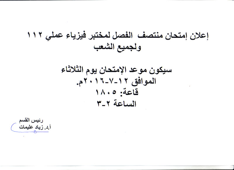اعلان امتحان قسم الفيزياء والعلوم التطبيقية كلية الهندسة التكنولوجية
