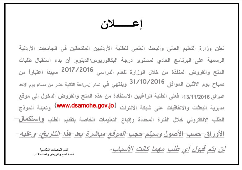 إعـــلان هام لتسليــم وثائـــق الطلبـــة المستجــديــن بواسطة