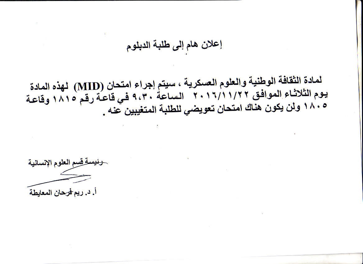 اعلان هام لطلبة الدبلوم كلية الهندسة التكنولوجية