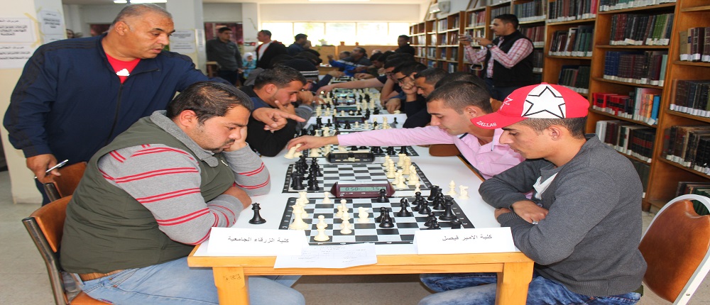 تحت رعاية الدكتور نعيم سلامة القاضي عميد كلية عمان الجامعية للعلوم المالية والادارية عضو الهيئة الادارية للاتحاد الرياضي للكليات الجامعية والجامعية المتوسطة انطلقت صباح اليوم في قاعة كلية عمان الجامعية بطولة الشطرنج للكليات الجامعية والجامعية المتوسطة بمشاركة 12 كلية جامعية هي كلية الزرقاء، كلية الامير الامير فيصل، كلية عمان الجامعية للعلوم المالية والادارية، مركز الجامعة، كلية القدس، اكاديمية الامير حسين ، كلية الخوارزمي، كلية الطفيلة، كلية عجلون، كلية الهندسة التكنولوجية، كلية الاميرة عالية، وكلية اربد .