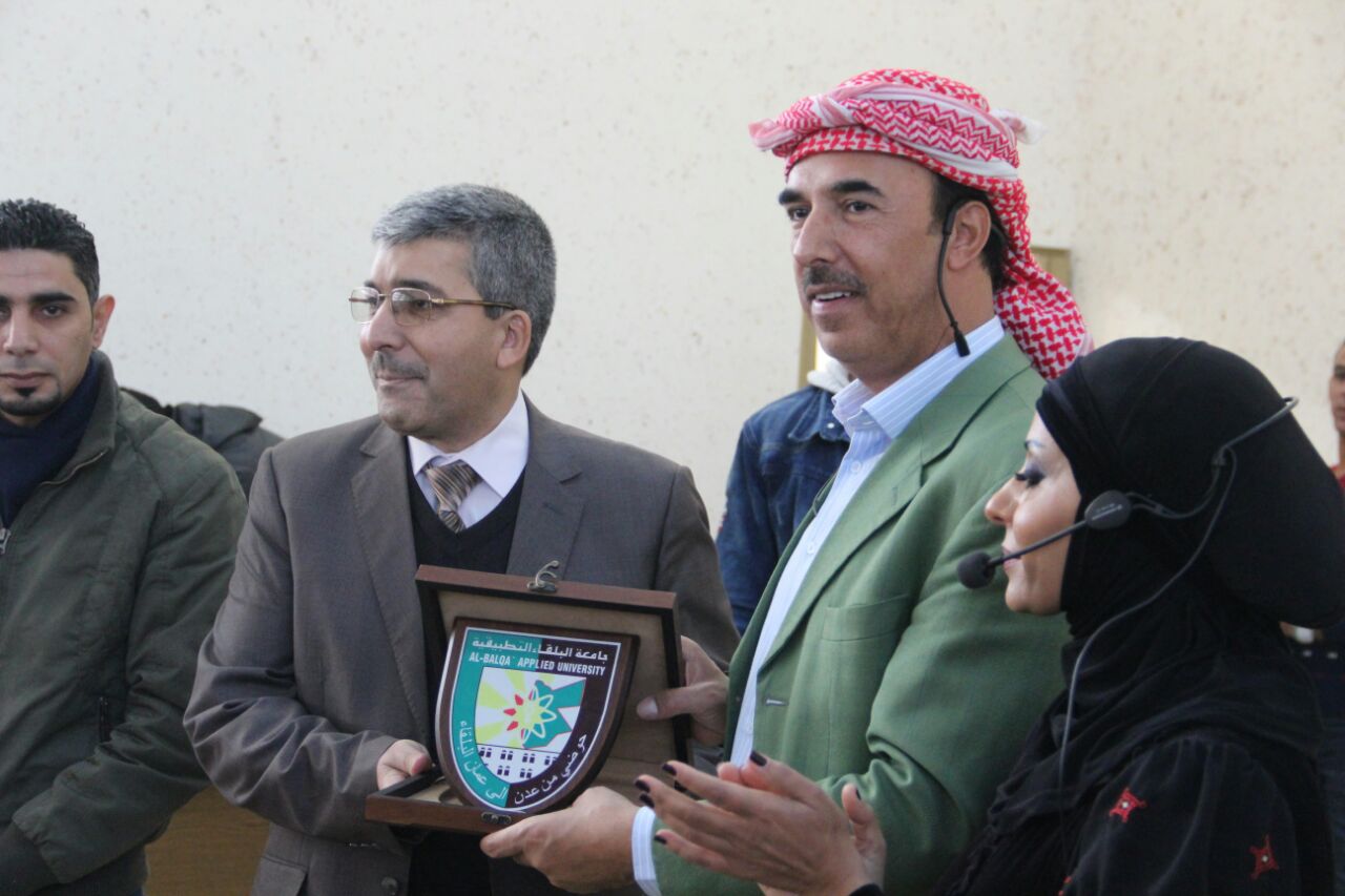 وفي نهايه المسرحيه سلم عميد الكليه الاستاذ الدكتور عبد المطلب الخضراوي درع الجامعة لفرقه المسرحيه