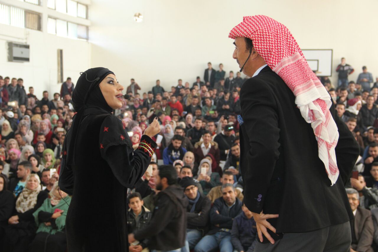تحت رعاية الأستاذ الدكتور عبد المطلب الخضراوي عميد الكلية تم عرض مسرحية (( إرهاب عالباب )) للفنانين حسن السبايلة ( زعل ) والفنانة رانيا إسماعيل (خضرا ) ونخبة من الفنانين على مسرح الكليه.
