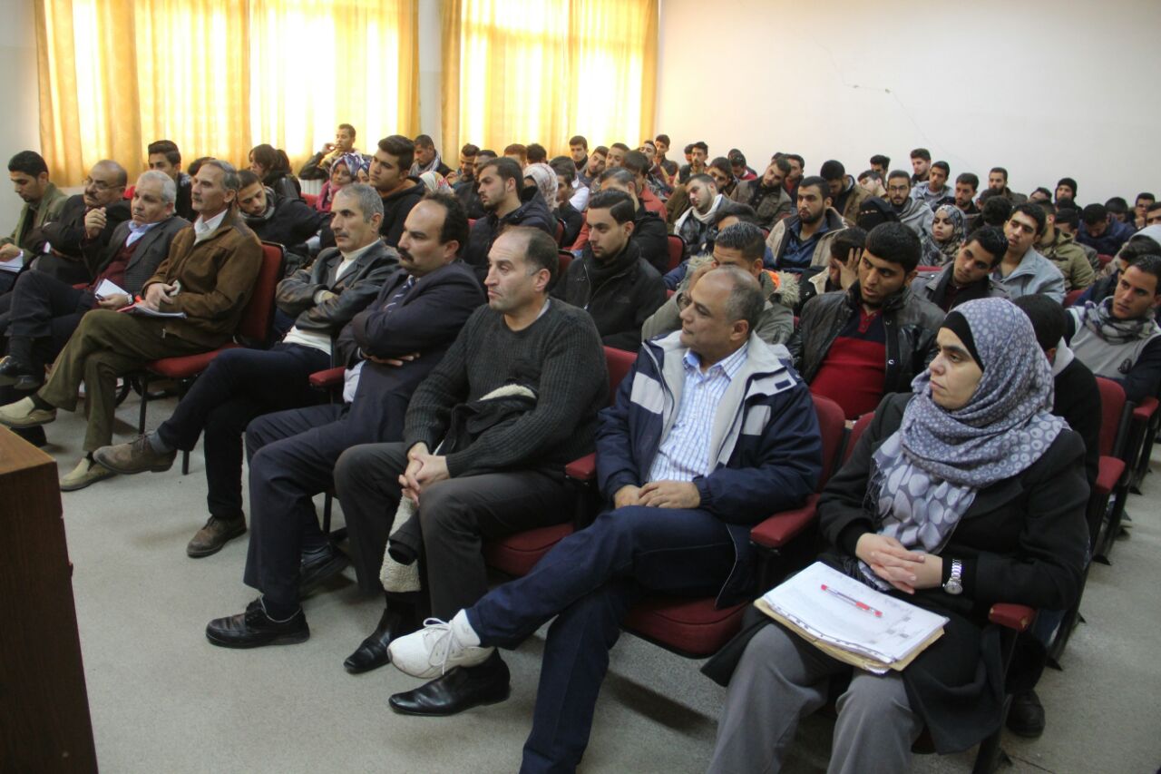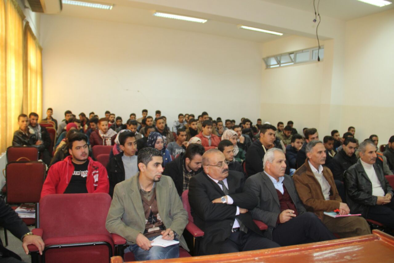وبين في محاضرته التي حضرها عميد الكلية الدكتور عبد المطلب الخضراوي والدكتور قاسم غنيمات مساعد العميد للشؤون الطلابية وأعضاء هيئة تدريس وإداريين وطلبة الكلية الإنجازات التنموية في كافة الميادين من تعليم عام وتعليم عالي وصحة وخدمات واعلام وبنى تحتية واقتصاد واحترام حقوق الإنسان فلم يسجن أحد ولم يعدم أو يتحول إلى رقم أي إنسان لرأي سياسي فأصبح الأردن رغم الإمكانات المحدودة قصة نجاح يضرب بها المثل في العالم